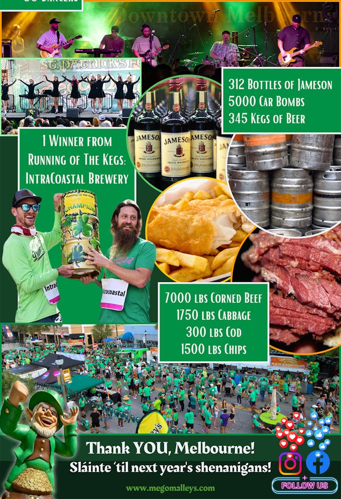 Relive all the fun and excitement of Meg O'Malley's 2024 25th Annual St Patrick's Fest including the parade, Shamrock Shuffle, Inaugural Keg Run, and live performances from The Expendables, The Green and Hot Pink!