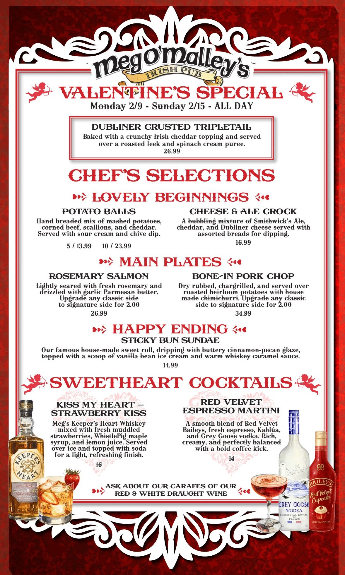 All served with a pickle spear and choice of one of the following: -Cup of Bean, Potato Leek, or Soup of the Day -House or Caesar salad -O’Malley’s Chips-